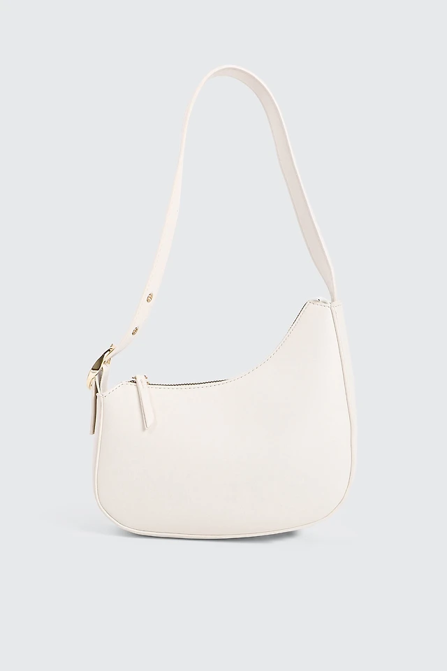 Ardene Asymmetrical Baguette Bag in White | 100% Recycled Polyester/Faux Leather | Eco-Conscious