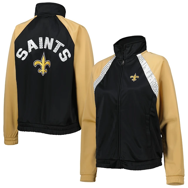 Women's G-III 4Her by Carl Banks Black/Gold New Orleans Saints Confetti Raglan Full-Zip Track Jacket