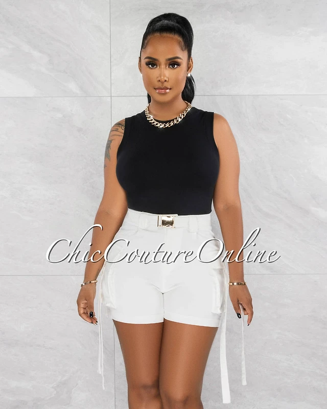 *Dawna Off-White Gold Buckle Cargo Pockets Shorts