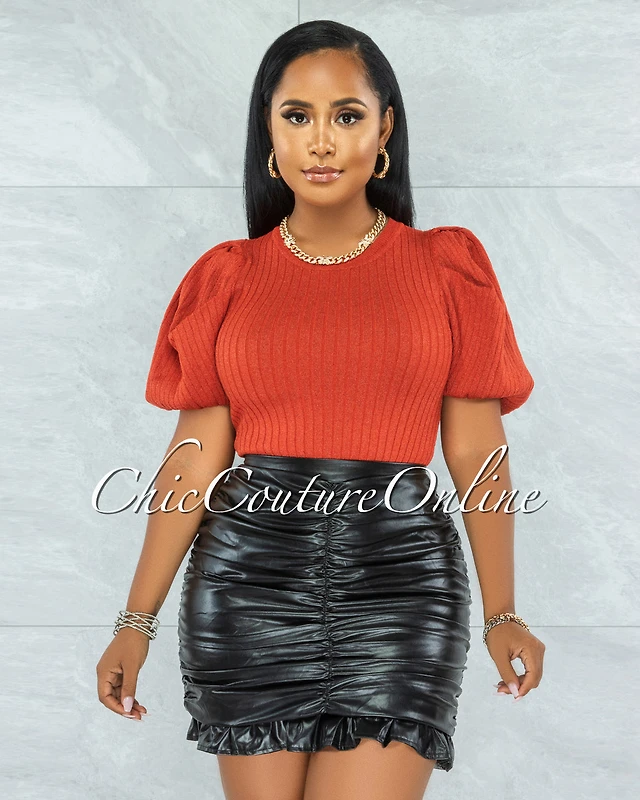 *Yacey Black Faux Leather Ruched Mini Skirt
