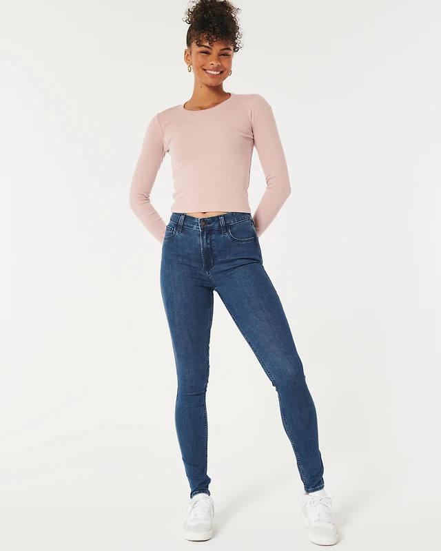 High-Rise Ripped Medium Wash Super Skinny Jeans