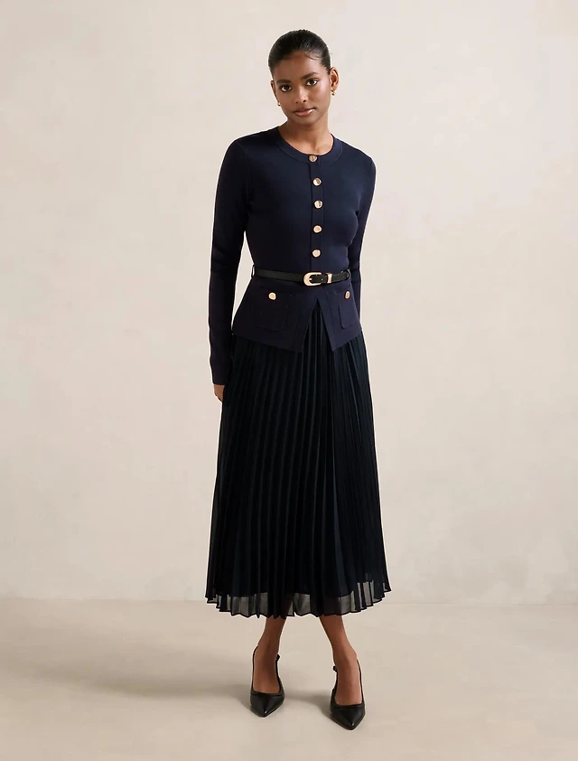Adelina 2-in-1 Pleat Midi Dress