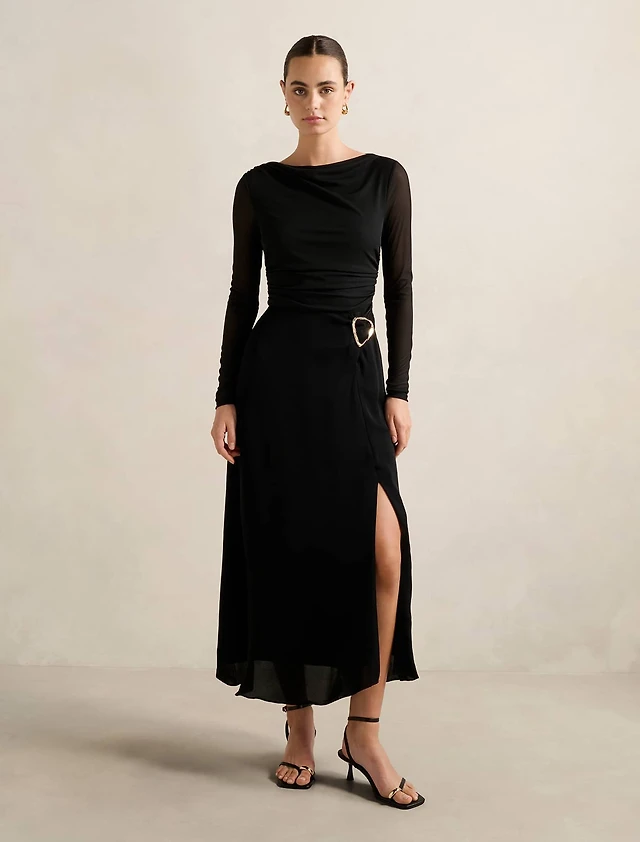 Amaya Long Sleeved Mesh Midi Dress