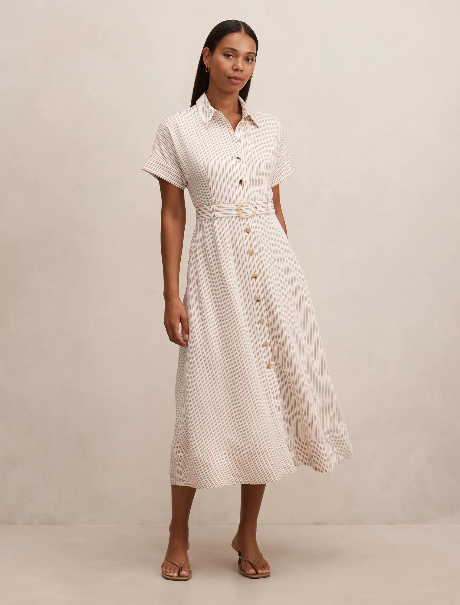Beechers Brook Patterned Button Up Belted Midi Dress - White