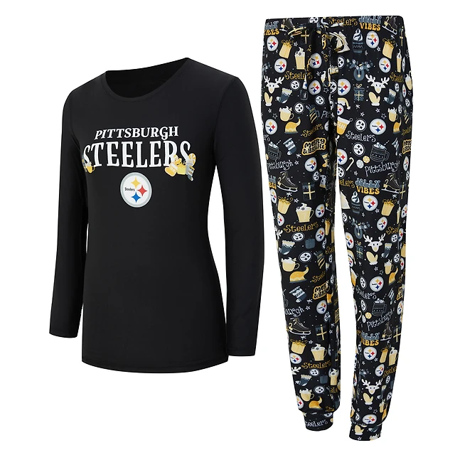 Women's Concepts Sport Black Pittsburgh Steelers Chesnut Long Sleeve T-Shirt and Pant Sleep Set