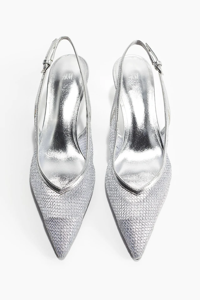 *Moments Silver Sole Clear Rhinestones Bow Pumps