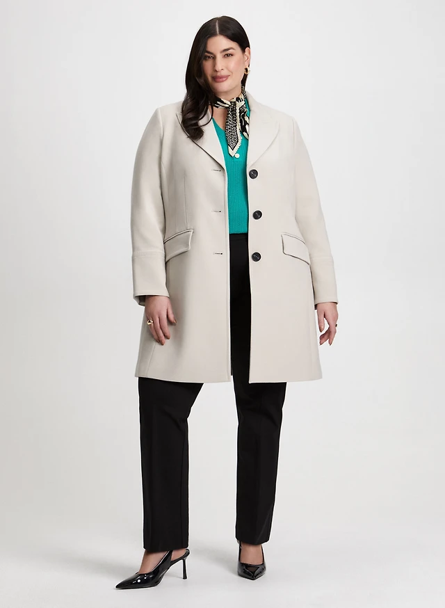 Button Front Tricotine Trench Coat & Slim Leg Pants