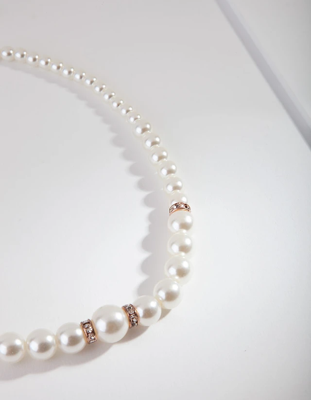 Rose Gold Diamante Disc Pearl Necklace