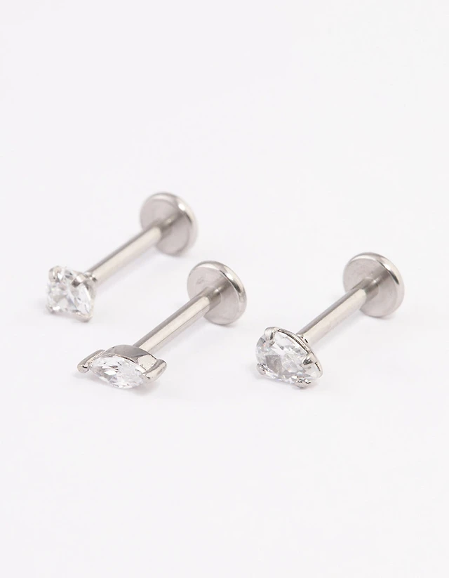 Surgical Steel Cubic Zirconia Leaf Threadless Flat Back Studs Pack