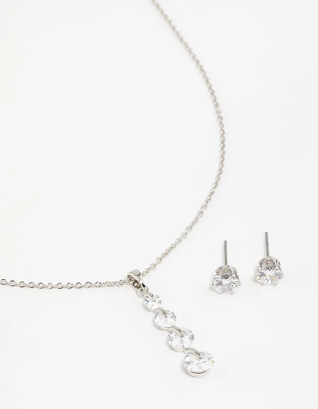 Silver Cubic Zirconia Necklace & Earrings Set