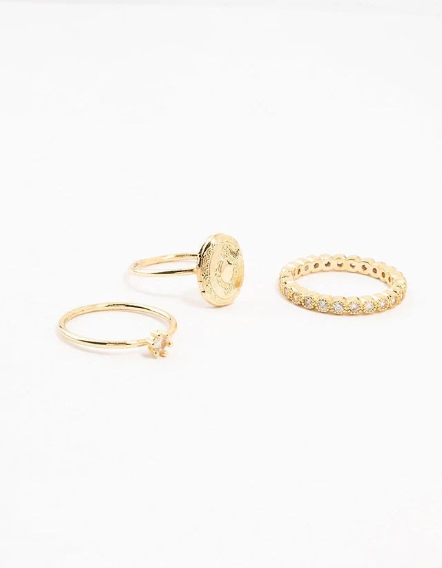 Rhodium Cubic Zirconia Double Band Stack Ring