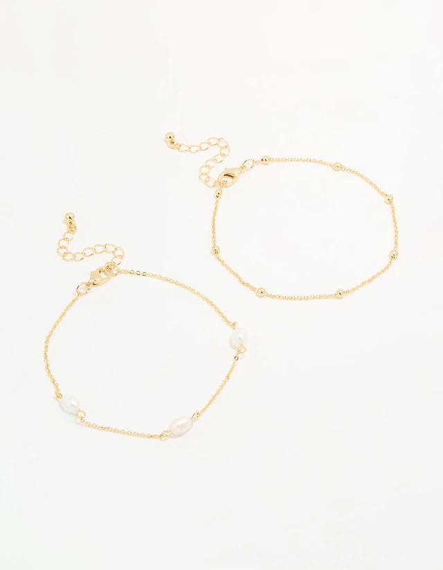 Triple Stacking Chain with Beaded, Rolo and Tinsel Links in 10kt Yellow Gold