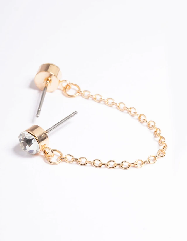 Gold Plated Surgical Steel Cubic Zirconia Butterfly Flat Back Earrings