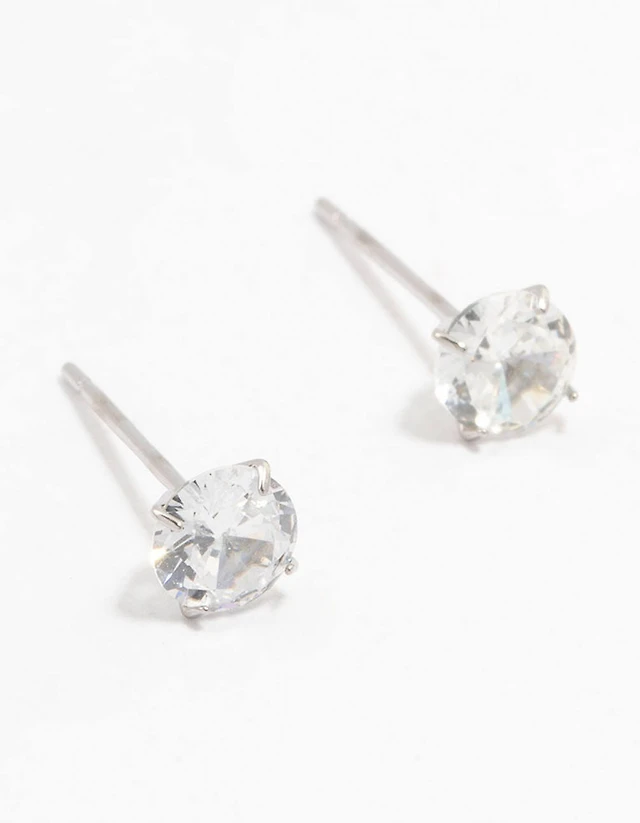 Silver 2 Carat Glass Stud Earrings