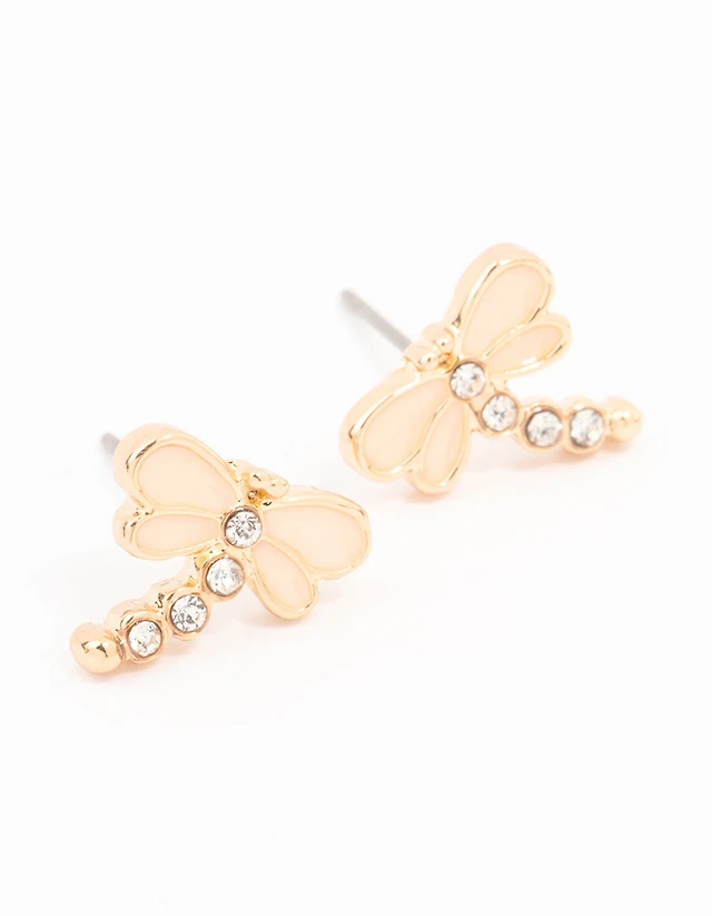 Gold Diamante Dragonfly Stud Earrings