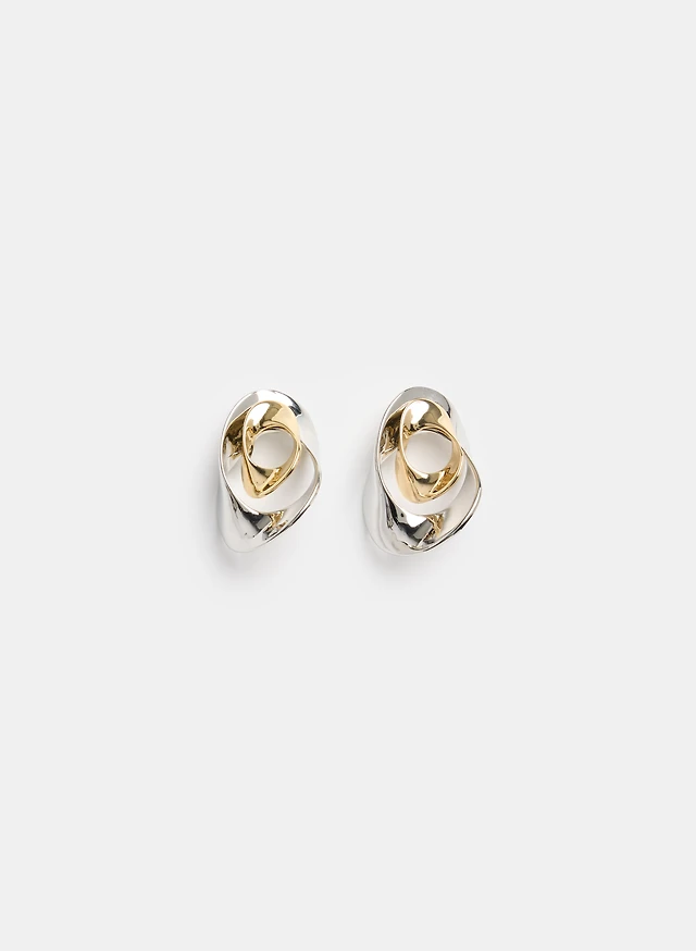 Gold Plated Molten Huggie & Cubic Zirconia Chain Earrings 4-Pack