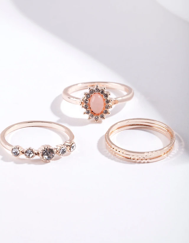 Gold Plated Cubic Zirconia Round Stone Ring Pack