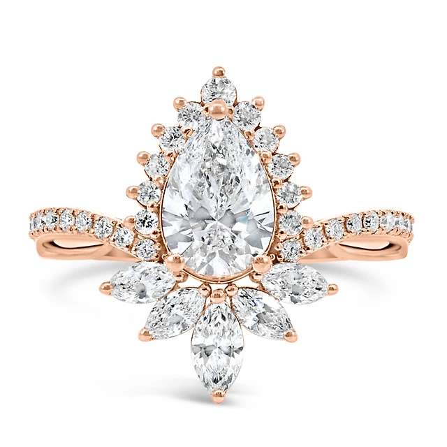 Halo Pear Engagement Ring with 0.92 Carat TW of Diamonds in 14kt White Gold