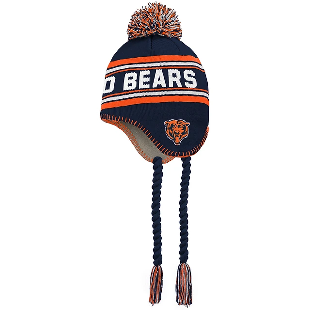 Girls Outerstuff Navy Chicago Bears Let's Play Cuffed Knit Hat with Pom