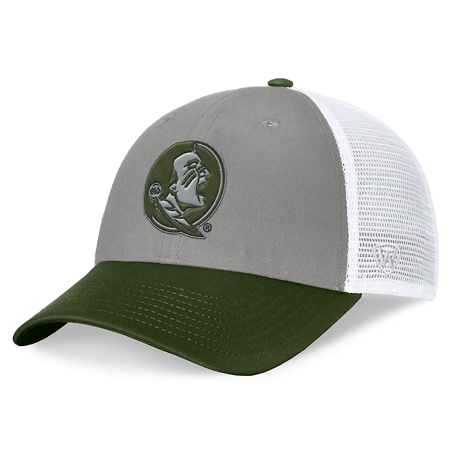 Men's Top of the World Gray/Green Florida State Seminoles OHT Military Appreciation Badge Trucker Adjustable Hat
