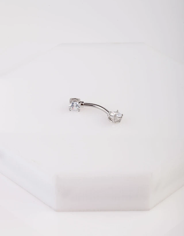 Silver Surgical Steel Crystal Belly Bar
