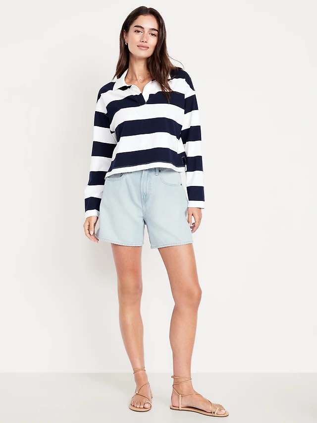 High-Waisted Striped Baggy Shorts -- 5-inch inseam