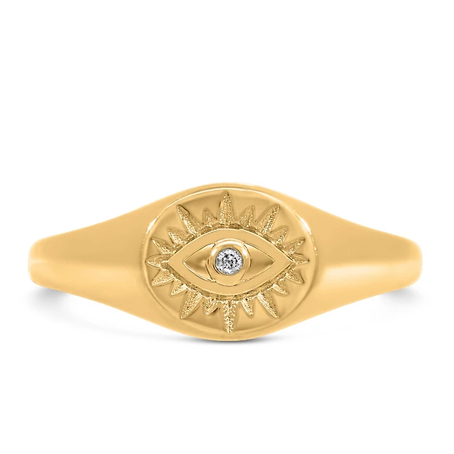 Evil Eye Signet Ring with .01 Carat Diamond in 10kt Yellow Gold