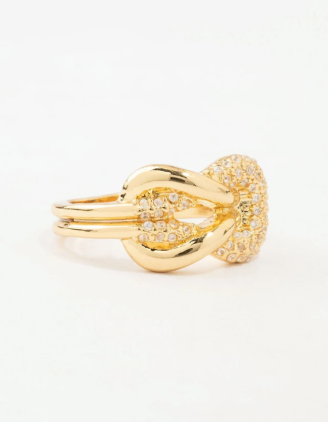 Gold Plated Bow Cubic Zirconia & Heart Rings 3-Pack