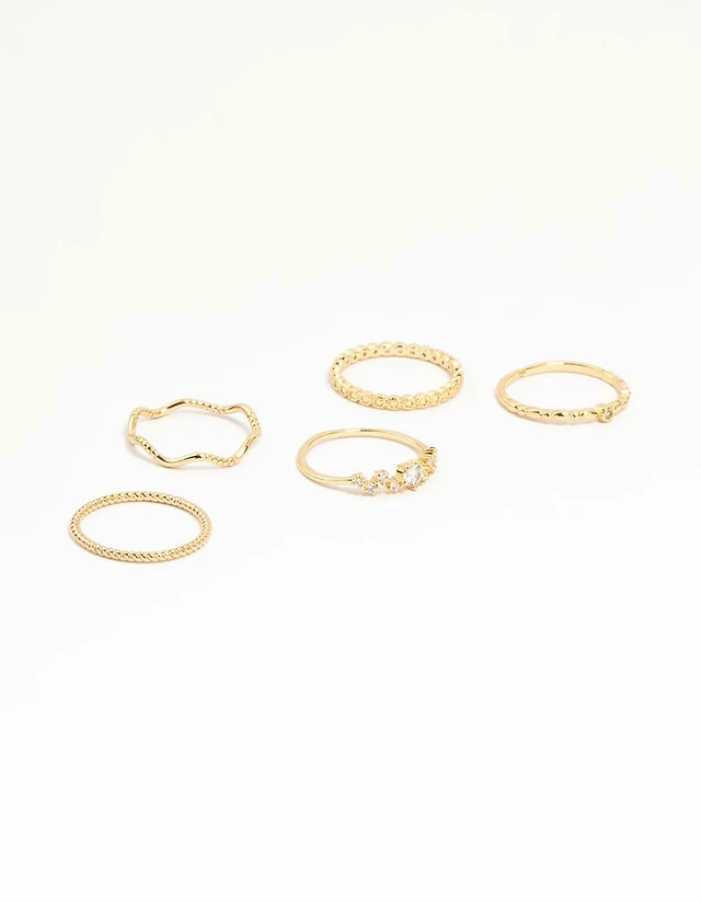 Kids Gold Pearl Heart & Butterfly Stacking Rings 6-Pack