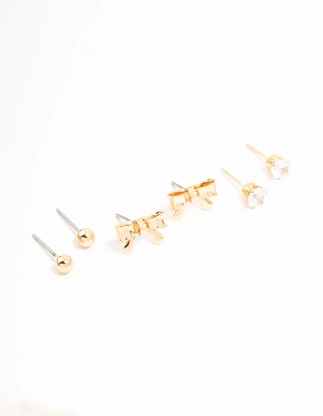 Rose Gold Rectangular Diamante Stud Earrings 3-Pack