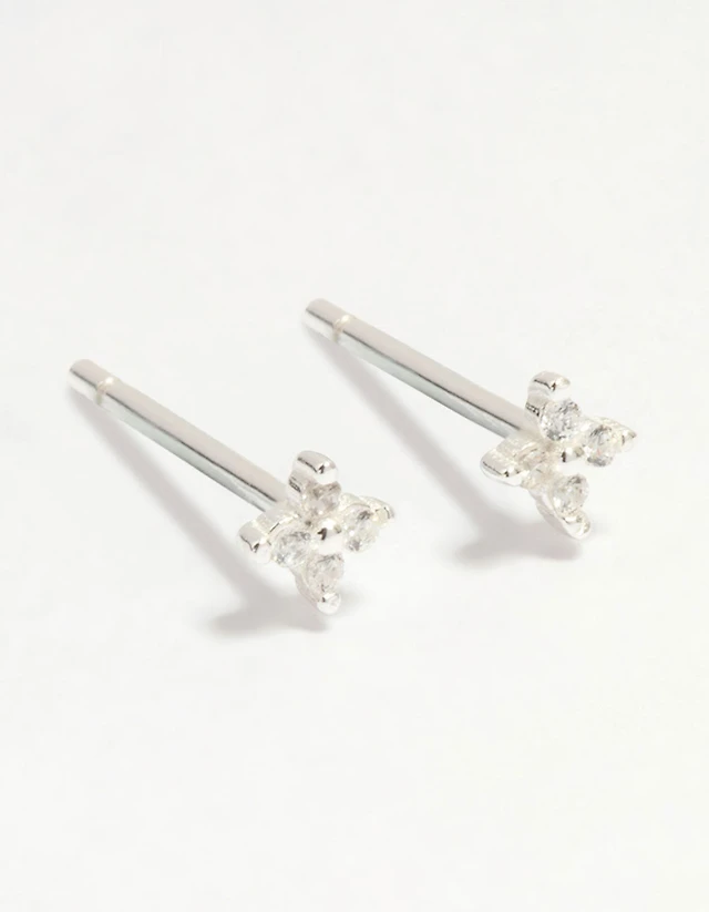 Mini Sterling Silver Cubic Zirconia Flower Stud Earrings