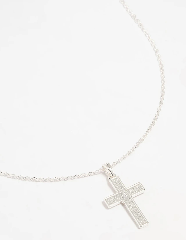 Silver Glitter Cross Necklace