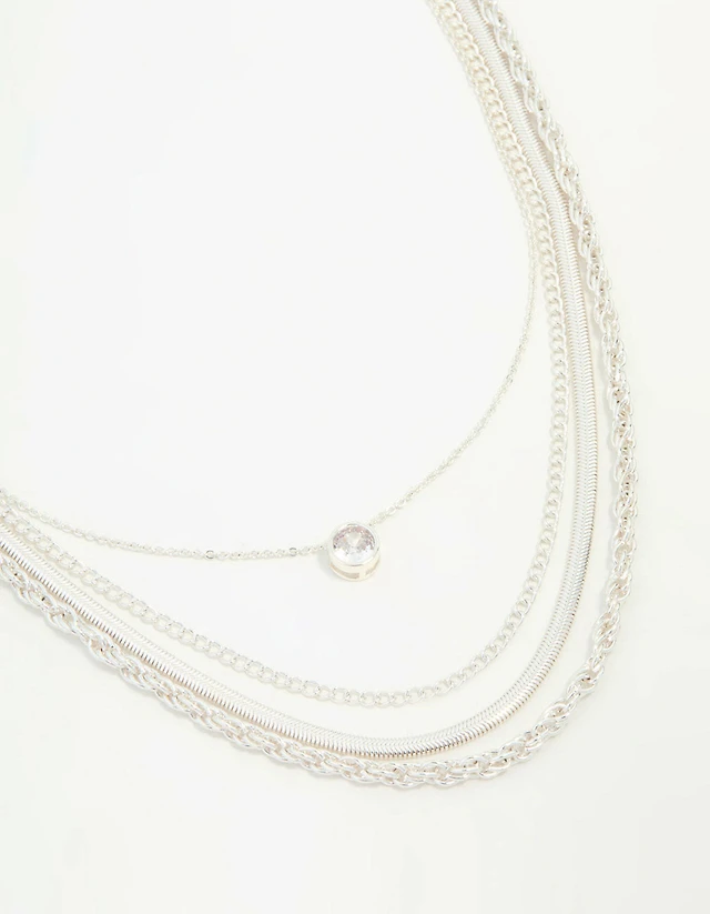 Silver Chain & Diamante Layered Necklace