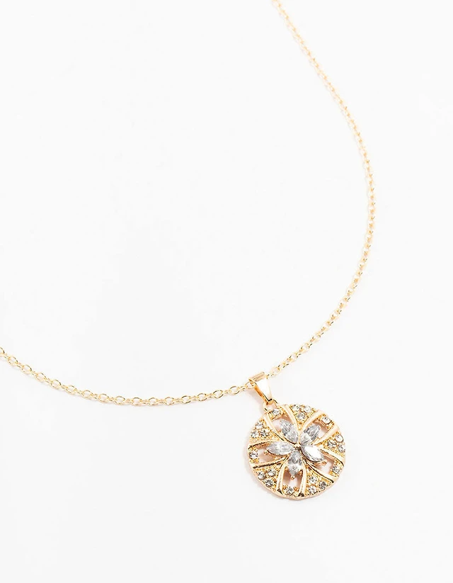 Gold Twisted Diamante Bow Chain Necklace