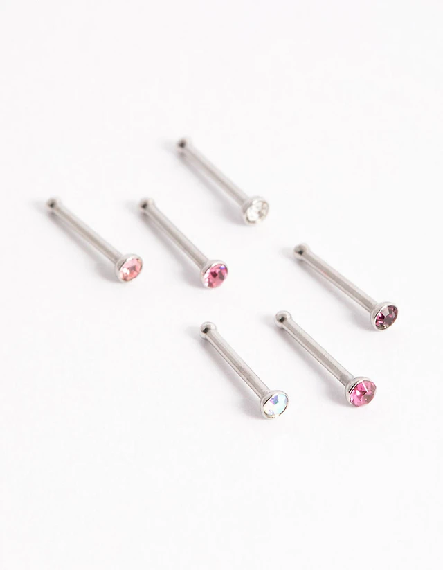 Surgical Steel Two-Toned Spiral Stud Crystal Nose Stud 6-Pack