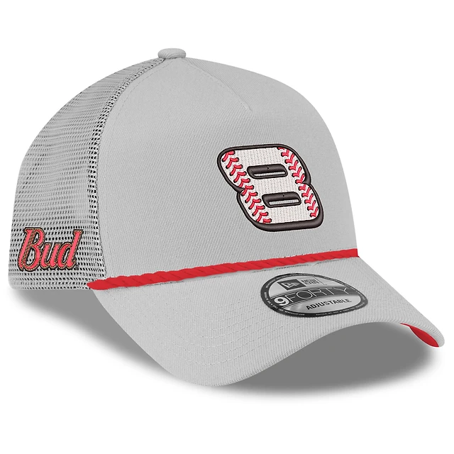 Men's New Era Gray Dale Earnhardt Jr. Budweiser 9FORTY A-Frame Trucker Adjustable Hat
