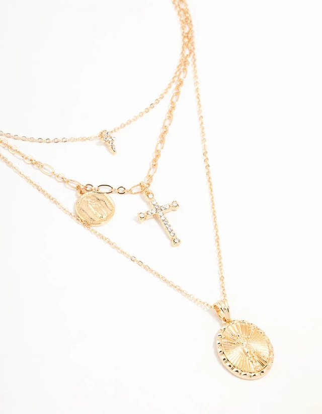 Sideways Diamond-Cut Bead Cross Necklace in 10K Gold - 17"
