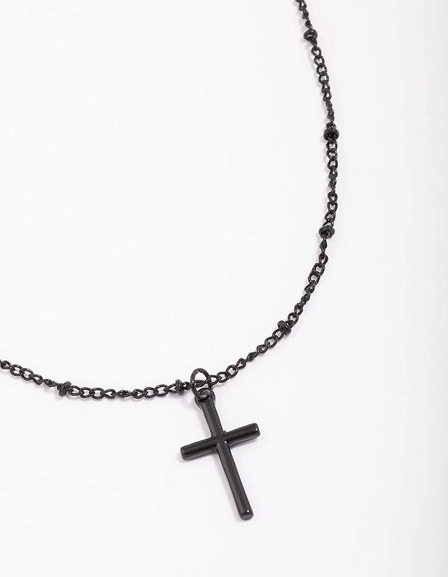 Gold Plated Black Onyx & Cross Lariat Necklace