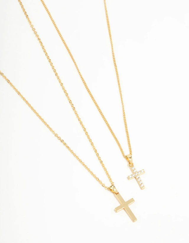 Child's Crystal Cross Pendant in 14K Gold - 13"