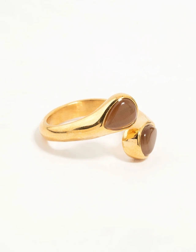 Waterproof Gold Plated Stainless Steel Double Pear Stone Ring