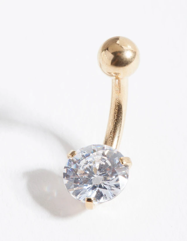 Gold Surgical Steel Round Cubic Zirconia Belly Bar