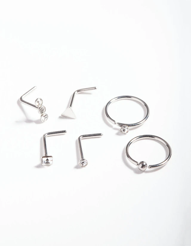 Surgical Steel Geometric Diamante Nose Ring 6-Pack
