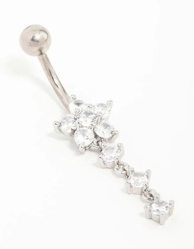 Titanium Butterfly Cubic Zirconia Drop Belly Bar