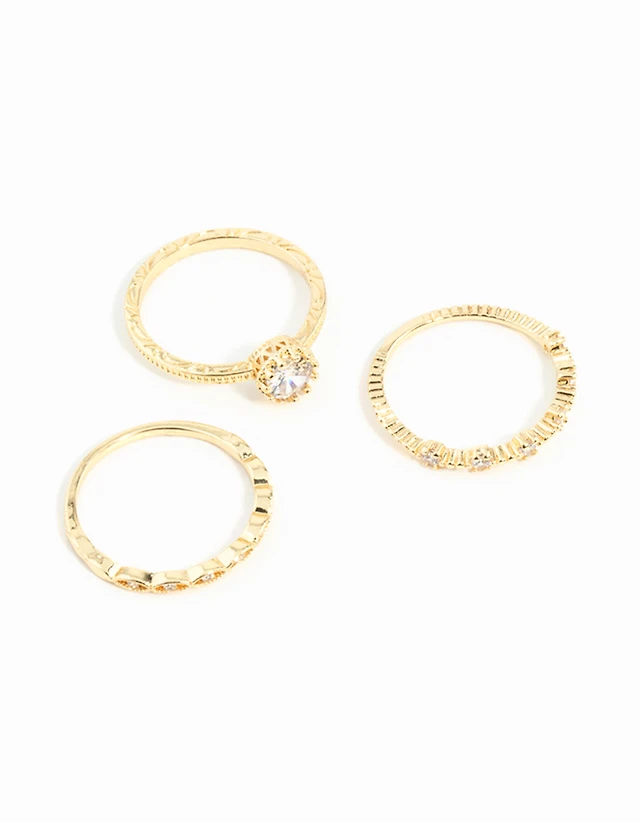 Gold Plated Cubic Zirconia Engaement Ring Stack