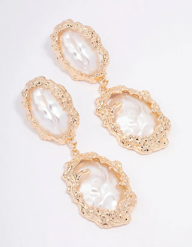 Gold Pearlised Flower Hoop Earrings