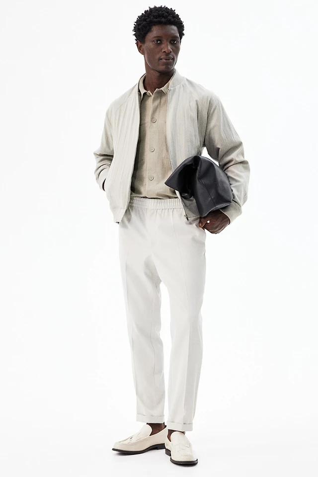 Linen-Blend Flex Waist Baggy Pants
