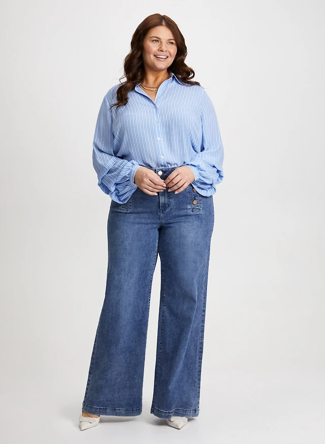 Rolled Sleeve Blazer & Wide-Leg Pants