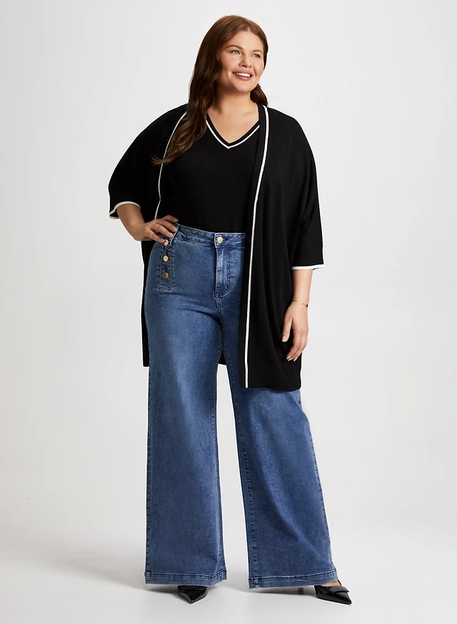 Open Front Cardigan & Wide Leg Jeans