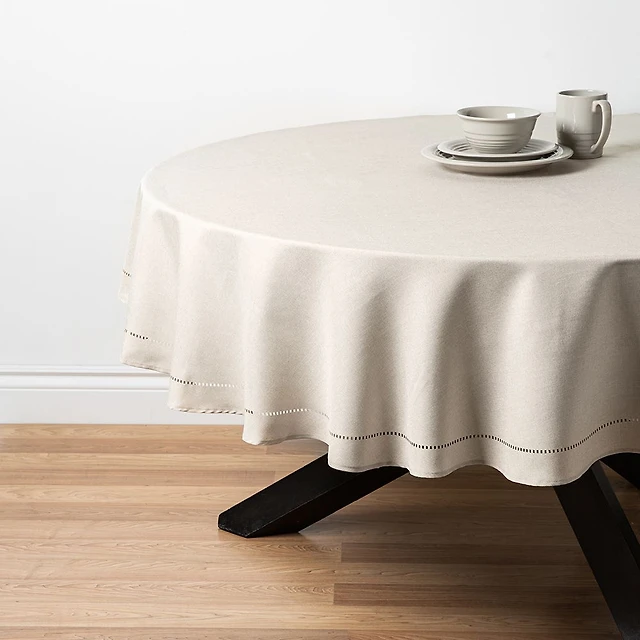Harman Hemstitch Polyester Tablecloth 70" Round (Linen)