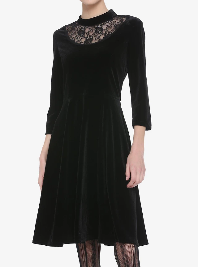 *Toraya Black Fishnet Accent Rhinestones Dress
